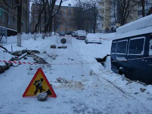 Як повідомляє аварійна служба "Київводоканалу", яма на дорогі сягає 3 метрів завширшки та 3 метрів завглибшки.