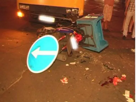 За попередніми даними, водій маршрутки повертав ліворуч і саме в цей час вискочив скутер, що розвозить піцу. Як наслідок, двоколісник врізався в автобус.