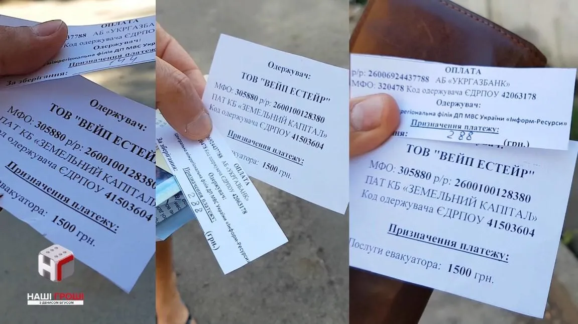 У київській філії ДП кажуть, що це тимчасова угода і за поясненнями радять звернутися до центрального офісу ДП МВС "Інформ-Ресурси". У обох офісах не можуть сказати, чи є у маріупольської фірми власні евакуатори. Тим часом, як зафіксували журналісти телепрограми "Наші гроші", насправді послуги евакуації надає інша компанія – ТОВ "Експрес-Т". Саме вона працювала і рік тому, коли за послугу платили відповідно до затверджених МВС тарифів, а отримувачем коштів було ДП МВС "Інформ-Ресурси".