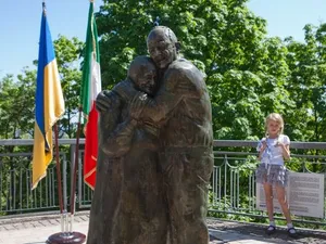 "Герої" пам’ятника познайомилися у роки Другої світової війни (1943 рік) у військовому таборі в Австрії, а зустрілися аж через 60 років, – повідомили у КМДА.