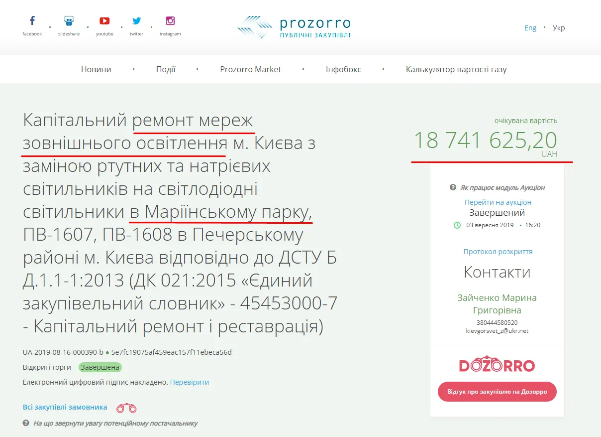 Згідно з тендером у системі ProZorro, стало зрозуміло, що заміна ліхтарів була запланованою. І обійшлось це місту майже у 19 мільйонів гривень.