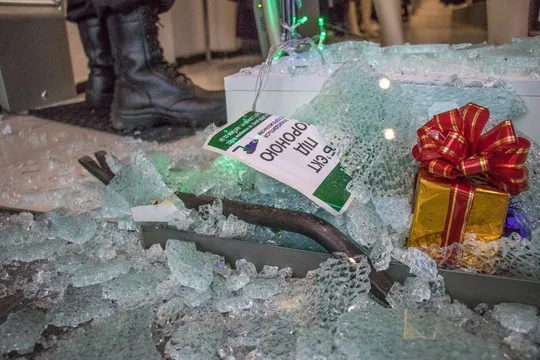 Зловмисники розбили скляні двері магазину близько 7:20. На місці одразу спрацювала сигналізація і вже через 4 хвилини на місці вже були співробітники поліції охорони, проте злочинці встигли втекти.