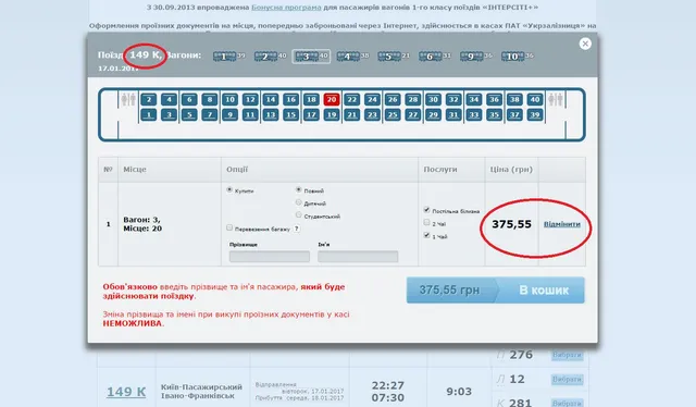 Вартість квитка у купейному вагоні від Києва до Івано-Франківська становить 375, 55 грн.