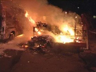 Через півгодини на вулиці Бойченка, 4, що розташована поблизу, спалахнули ще 2 автомобілі. Практично ущент згоріли “Нісан” та “Міцубісі”. Ще в одного “Нісану” був обпалений багажник. В салоні одного з автомобілів знайшли цеглину, якою невідомі вандали розбили скло.