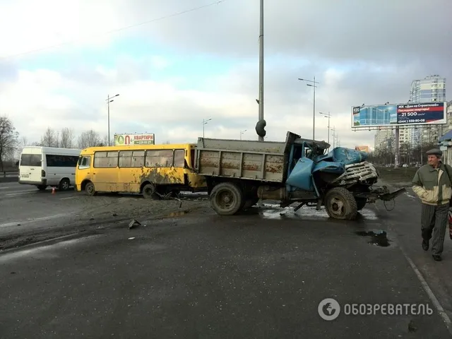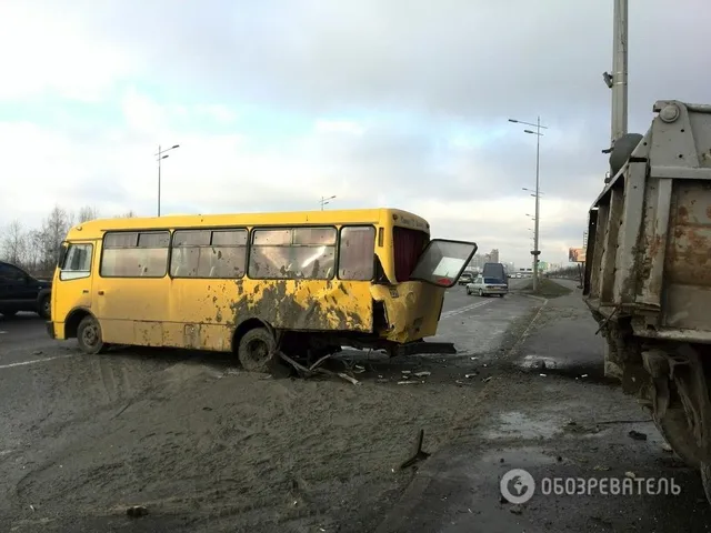 Зіткнення транспортних засобів було настільки сильне, що маршрутку розвернуло, а вантажівка влетіла у зупинку громадського транспорту, пише "Обозреватель".