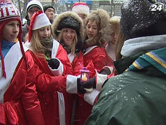 Згодом за священним вогнем прийшли представники інших скаутських організацій. Усі - в образі дідів-морозів.