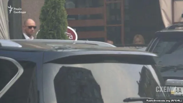 На фото видно, як Арсеній Яценюк сідає в автомобіль, який його відвіз до МВС.
