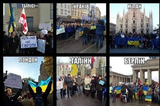 Як повідомляють у соцмережах активісти Євромайдану, акції на підтримку євроінтеграційного шляху України провели у 46 містах 22 країн світу.