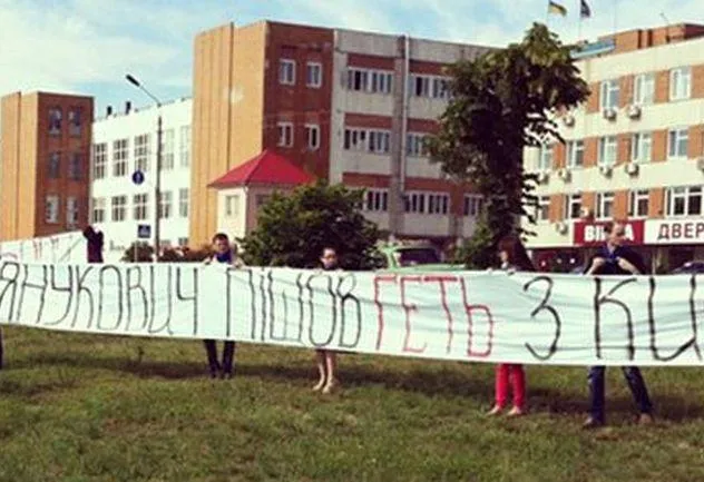 Зокрема, його обурив напис "Янукович, пішов геть з Києва". Ще один плакат містить напис "Києву – вибори".