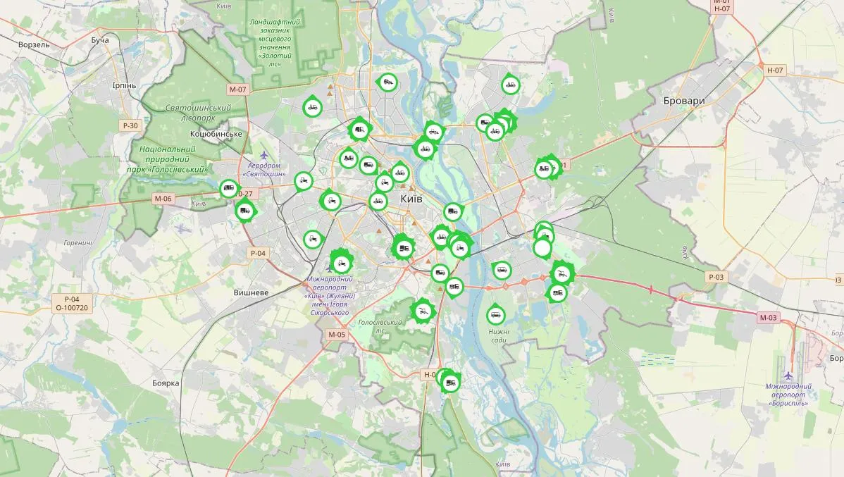 - Голосіївський проспект (від метро "Іподром" та "Голосіївська", "Деміївська");