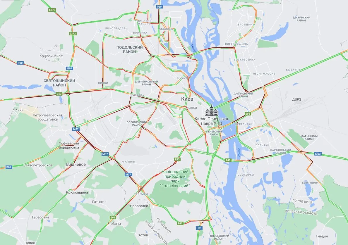 На Правому березі затори утворилися на всіх дорогах, які ведуть до центру. На Лівому – важко дістатися мостів.