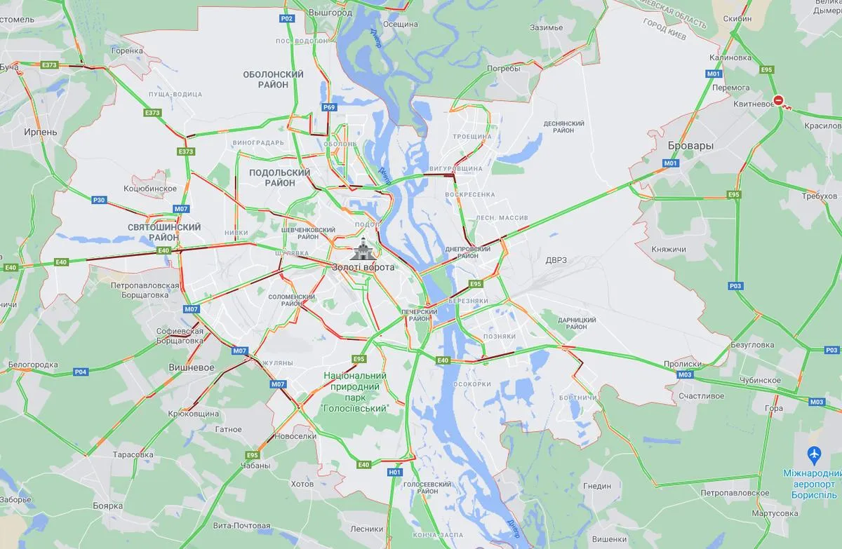 Ускладнення в русі на дорогах столиці утворилися на звичних для всіх місцях. На Правому березі важко проїхати в бік центру, а на Лівому – у напрямку мостів. Крім того, серйозні затори спостерігаються на в'їздах до столиці.