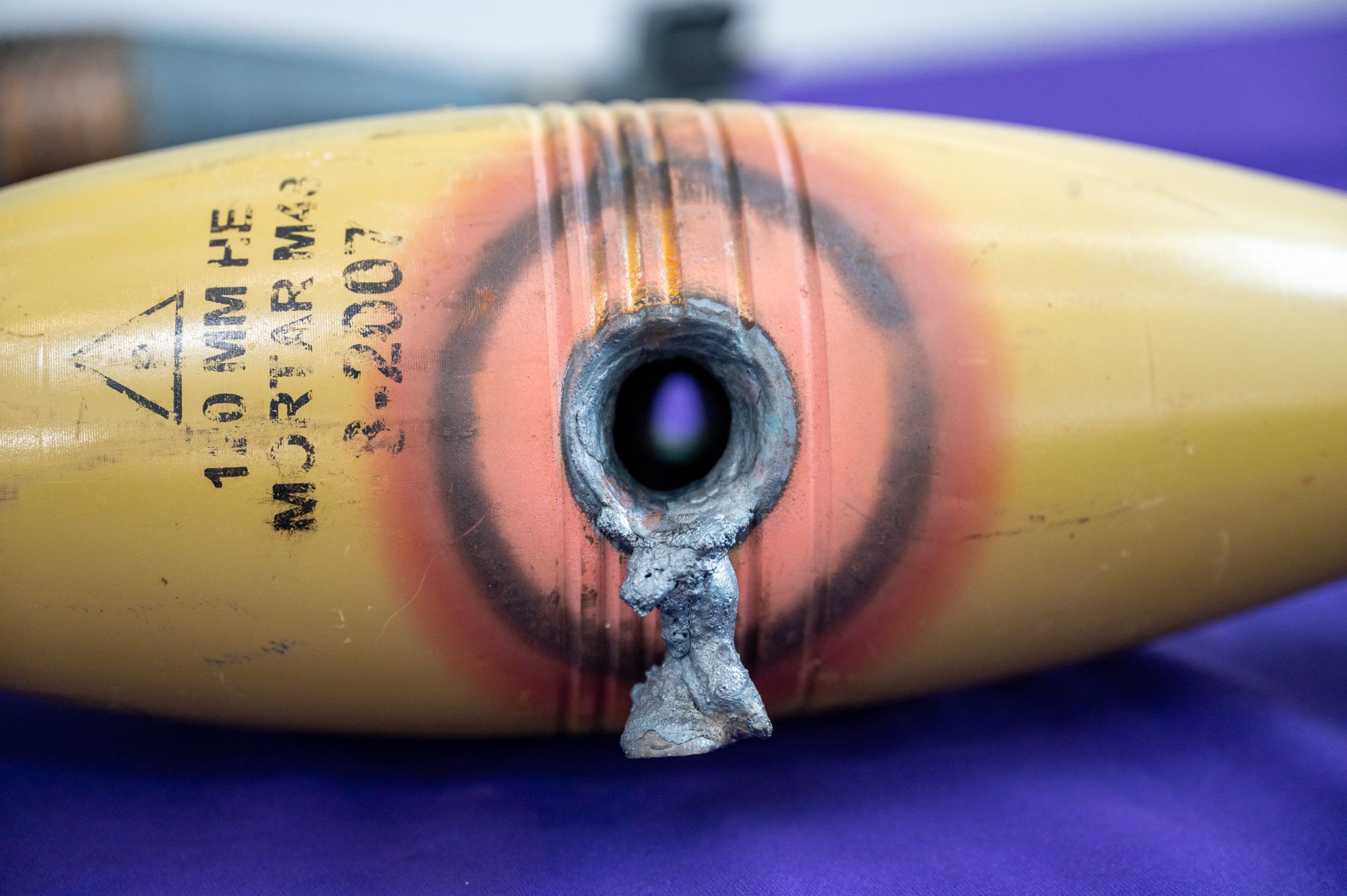 Dstl показали фото уражених цілей. На кадрах можна побачити мінометну міну калібру 120 міліметра від радянського міномета ПМ-43, FPV-дрон та лист металу, який має репрезентувати крило літака чи корпус ракети.