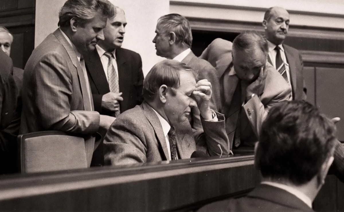 Прем’єр-міністр Леонід Кучма сперечається із секретарем Комісії у питаннях законності Іваном Макаром, Київ, 1993 рік / Фото Олександр Клименко