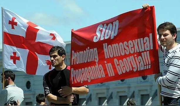У Європі ставлення до ЛГБТ переважно позитивне, проте на просторах колишнього СРСР гомофобія має місце. На фото – захисники традиційних цінностей у Грузії