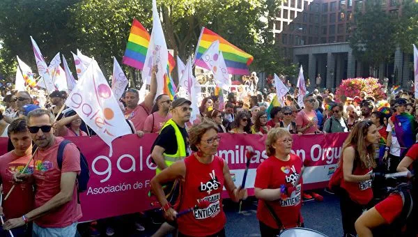 Закон про шлюбне партнерство в Україні так і не прийнято. Наші одностатеві пари можуть лише мріяти про "узаконення стосунків" або ж їхати задля укладання шлюбу за кордон. На фото – момент гей-параду у Мадриді