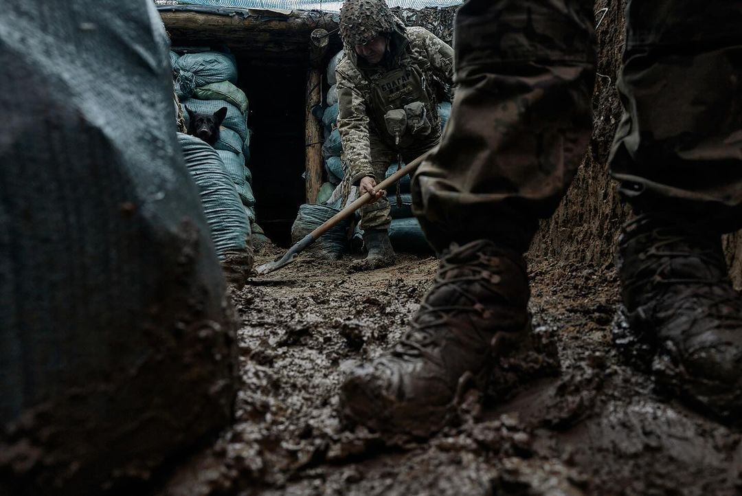 Фотограми Констянтин та Влада Ліберови поділилися знімками окопів у Донецькій області, де базуються піхотинці з 24 бригади. Вони живуть майже 24/7 у багнюці і щоб воїни не робили, вони відчувають себе брудним. Військові будують спеціальні зливки в окопах, щоб вода не збиралась, однак на певних ділянках навіть це не працює. Тож беруть в руки лопати та починають вичерпувати.