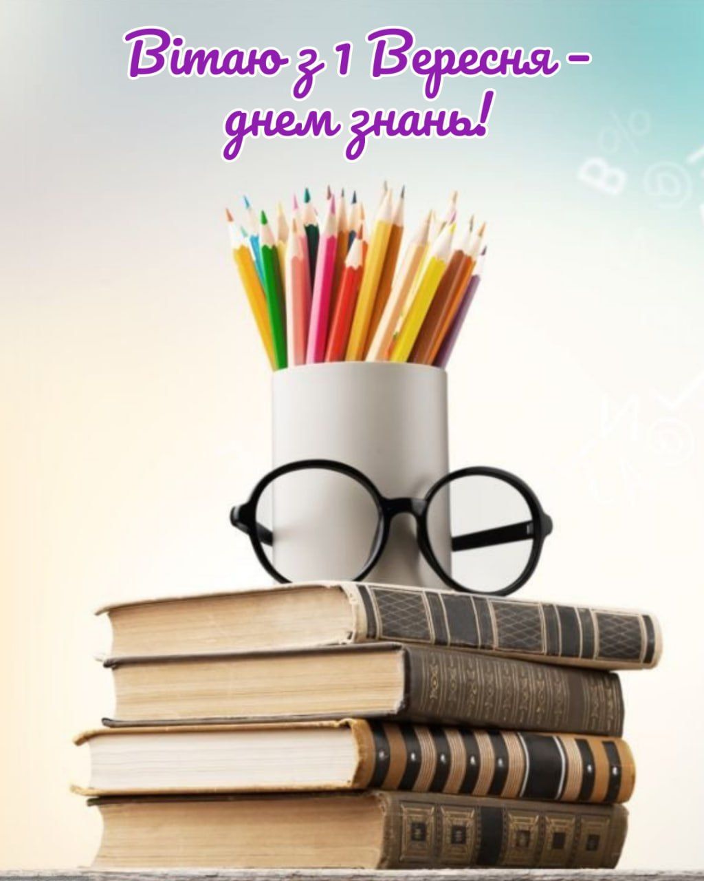 Вітаю з Днем знань! Бажаю величезного бажання вчитися та здобувати нові знання. Легкого навчального року вам, дружної атмосфери, цікавих подій, чудових оцінок і постійного прагнення бути кращим, ніж учора. Успіхів, удачі, здоров'я, терплячості й чудових результатів!