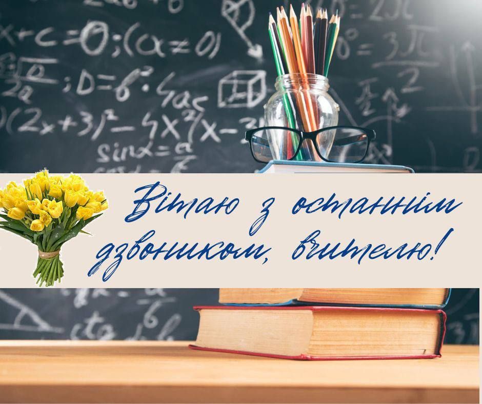 Шановні вчителі, вітаю вас з останнім дзвоником! Цей день символізує завершення нелегкої, але дуже важливої роботи. Ваш внесок у життя учнів неоціненний, і я вдячний за вашу відданість, терпіння і професіоналізм. Нехай літо принесе заслужений відпочинок і натхнення для нових досягнень!