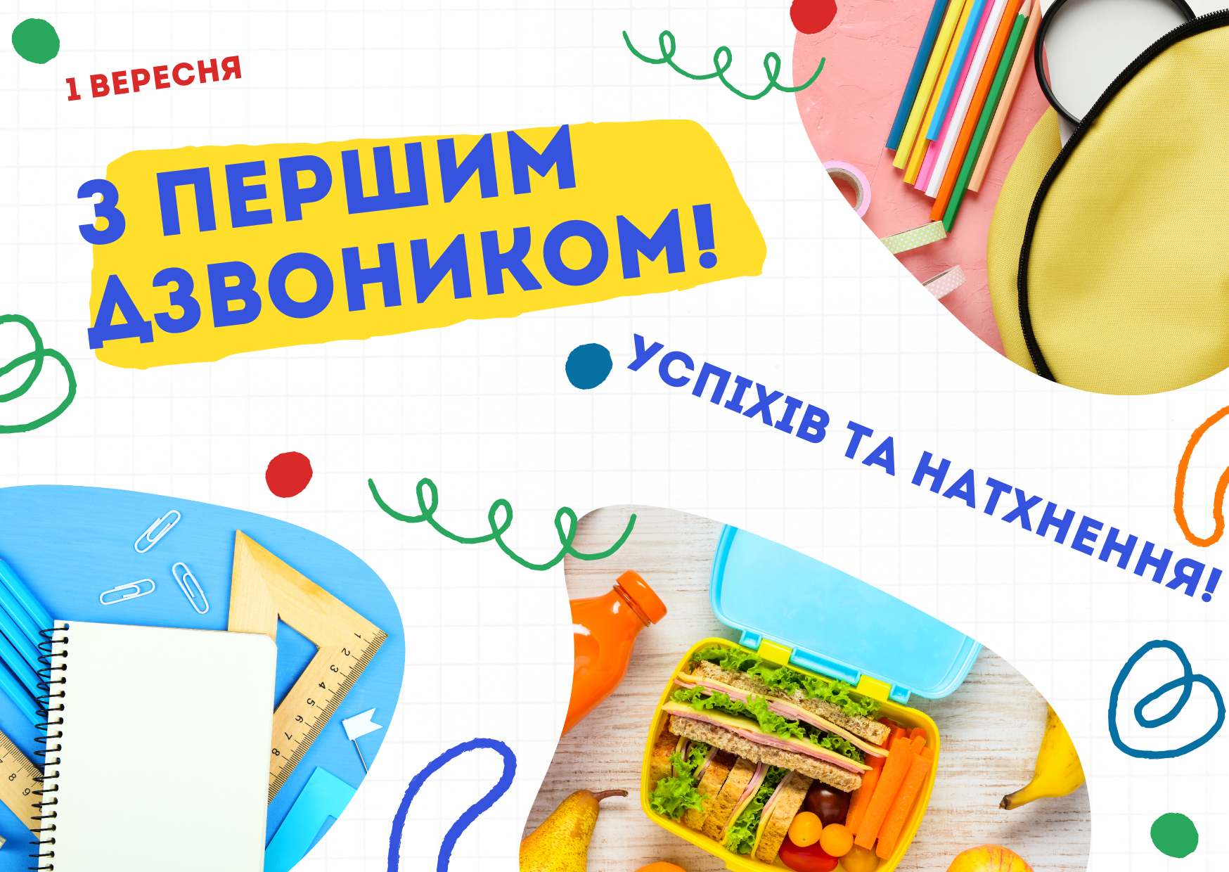 Дорогі школярі! Вітаємо вас із початком нового навчального року. Нехай кожен день у школі приносить вам нові відкриття, радість пізнання та яскраві враження. Хай ваші зошити наповнюються не тільки правильними відповідями, а й цікавими думками, мріями та планами. Бажаємо вам дружби, яка підтримує, і вчителів, які надихають.