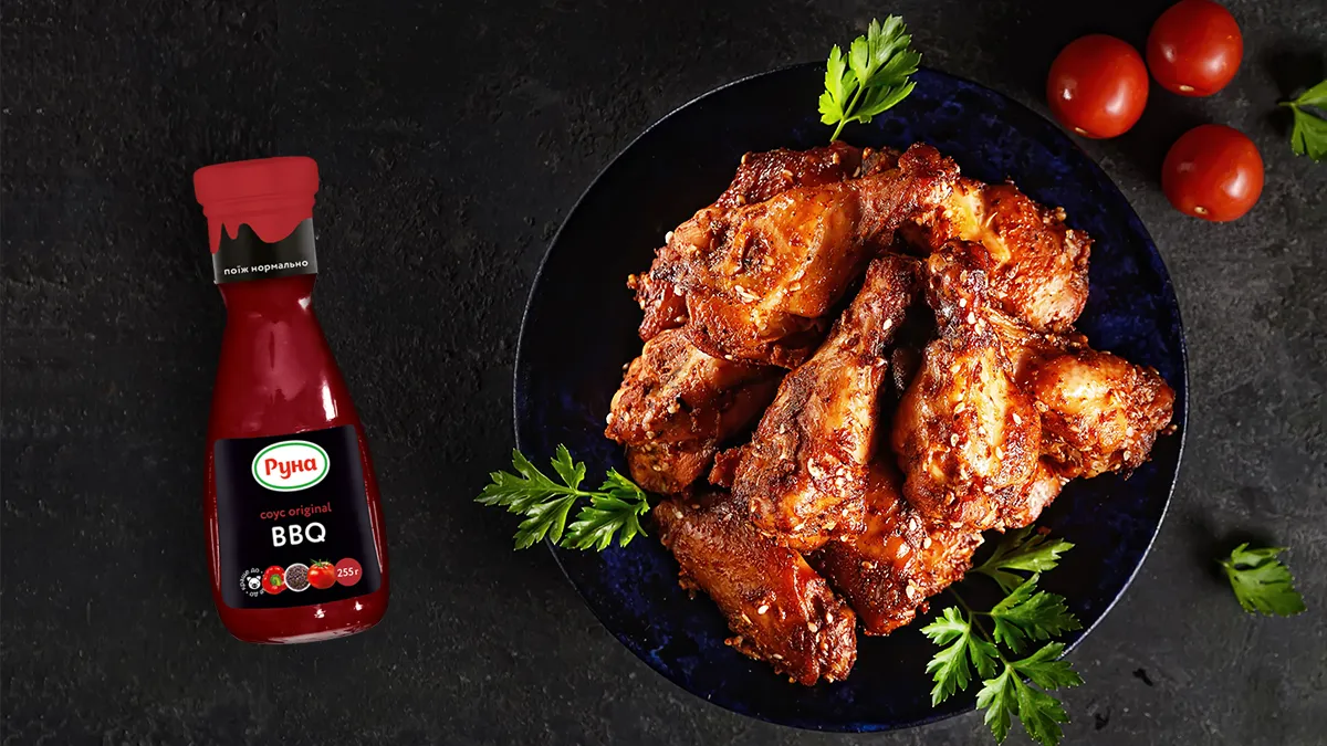 Чтобы придать блюду по-настоящему незабываемый вкус, используем соусы ТМ Руна. Для этого смешиваем в миске Original BBQ и Sriracha, а также добавляем к ним ароматную Французскую горчицу. Все перемешиваем – и вуаля: соус готов!