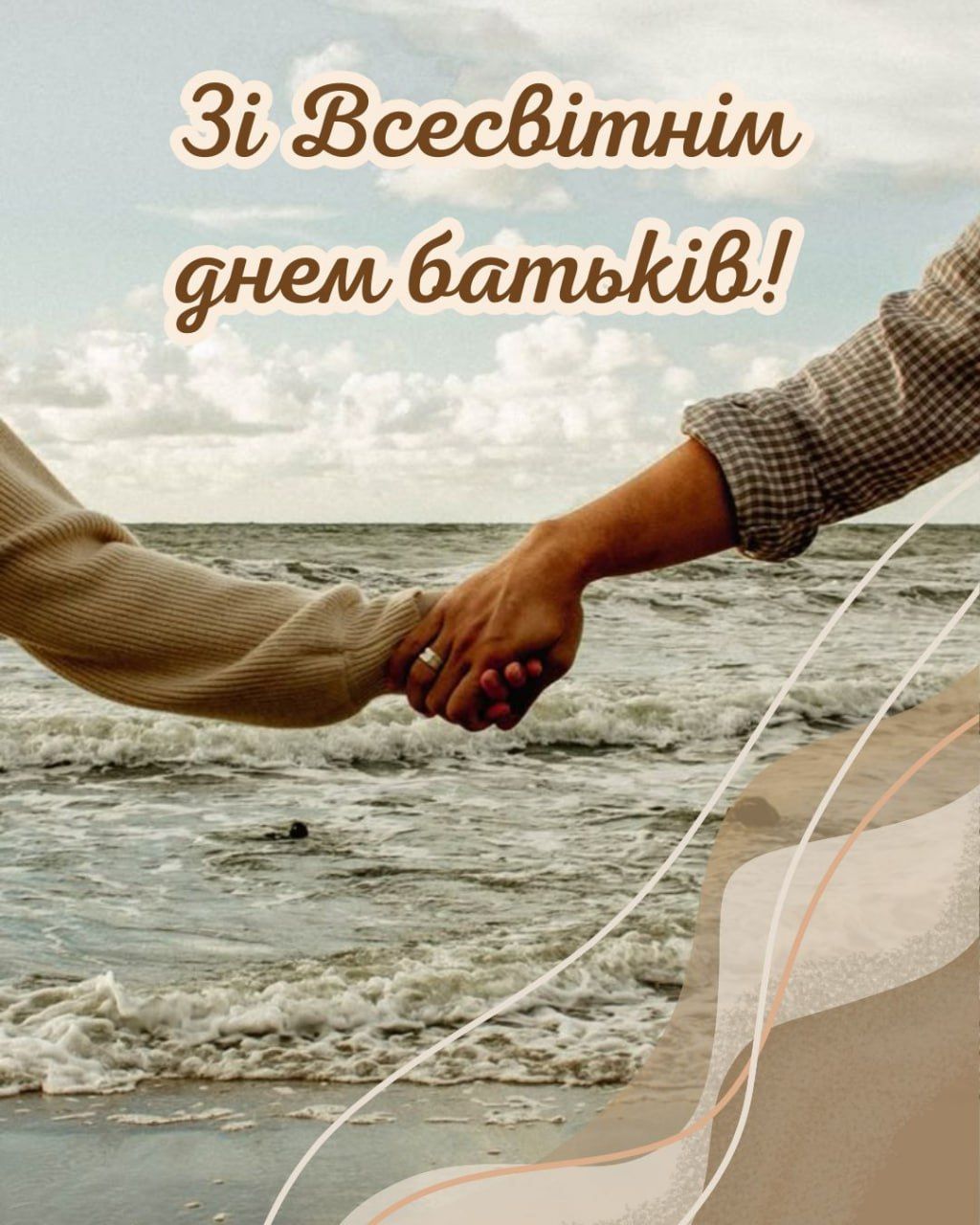 Вітаю зі Всесвітнім днем батьків! Бажаю величезного сімейного щастя, душевності, любові, ніжності, турботи й уваги від ваших дітей. Нехай почуття єднання і привітності завжди гріє вас у будь-яку погоду, в будь-який час року. Бережіть одне одного і будьте щасливі!