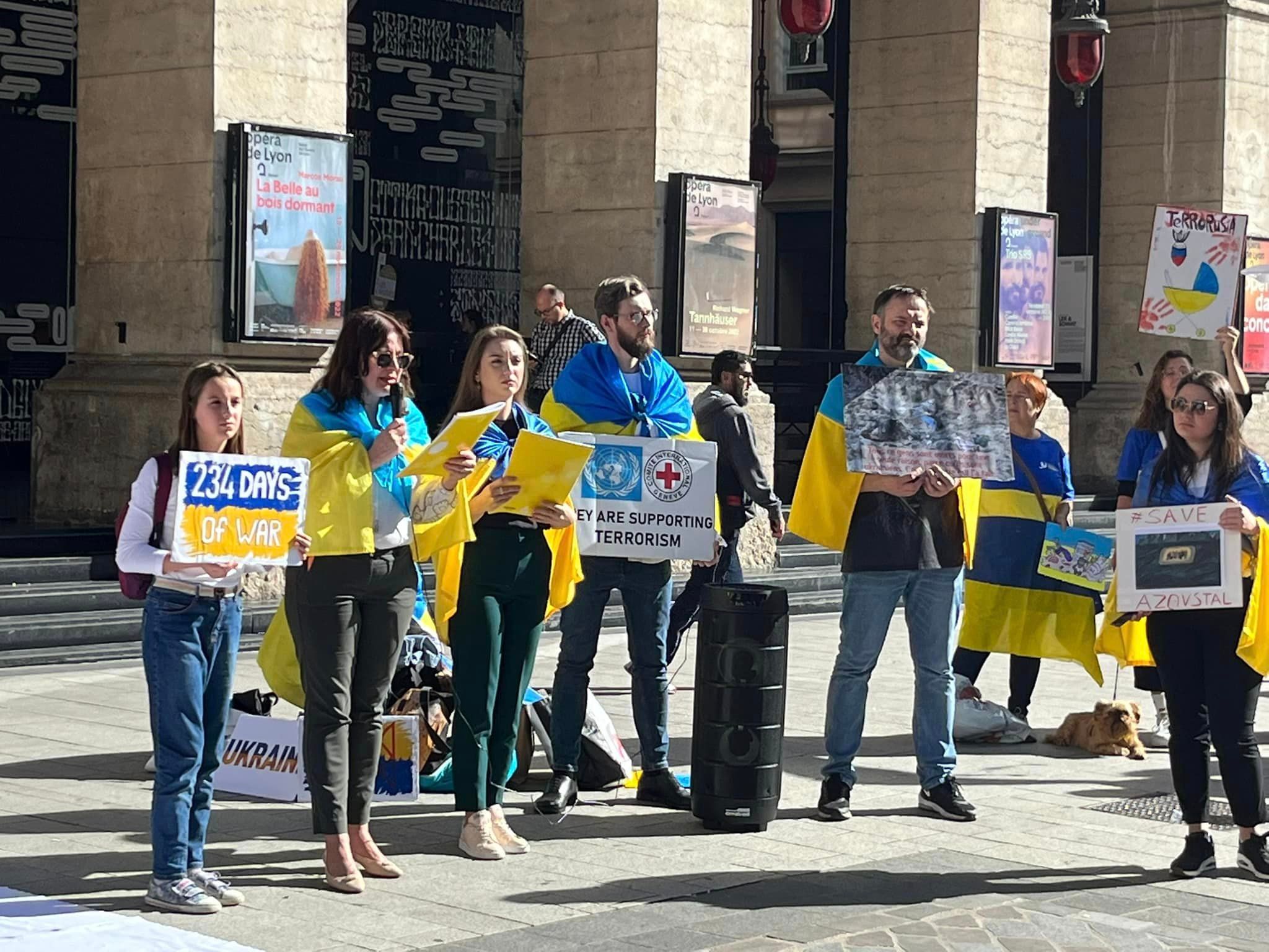 Українці в Ліоні наголосили, що майже після 8 місяців повномасштабної війни міжнародна спільнота нарешті визнала Путіна як терориста, яким він був протягом багатьох років. Відзначили, що диктатор втягнув значну частину свого населення в криваву і божевільну колоніальну кампанію, з якої вже не знає, як вирватися.