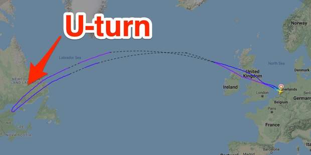 За 5,5 годин польоту літак розвернули назад. Він був вимушений полетіти назад до Амстердама, бо в іншому аеропорту сісти не міг. Відомо, що літак намагався сісти в Канаді, але у пасажирів не було віз. А ще на борту окрім пасажирів перевозили коней і для прийому такого великого судна потрібні спеціальні умови, які є не у всіх аеропортах.