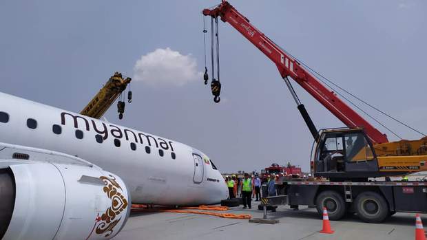 Дивіться фото літака після жорсткої посадки//Фото: Myanmar National Airlines