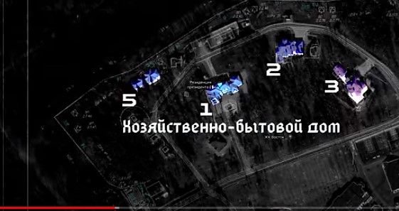 Резиденція під назвою "Схід" складається з кількох будинків. Площа головної будівлі становить понад 1157 квадратних метрів. Вона містить три тераси та місце для барбекю. Крім нього на території збудовано ще три житлові будівлі меншої площі, з навісами та індивідуальними куполами, та кілька службових будівель, зокрема гараж та овочесховище.