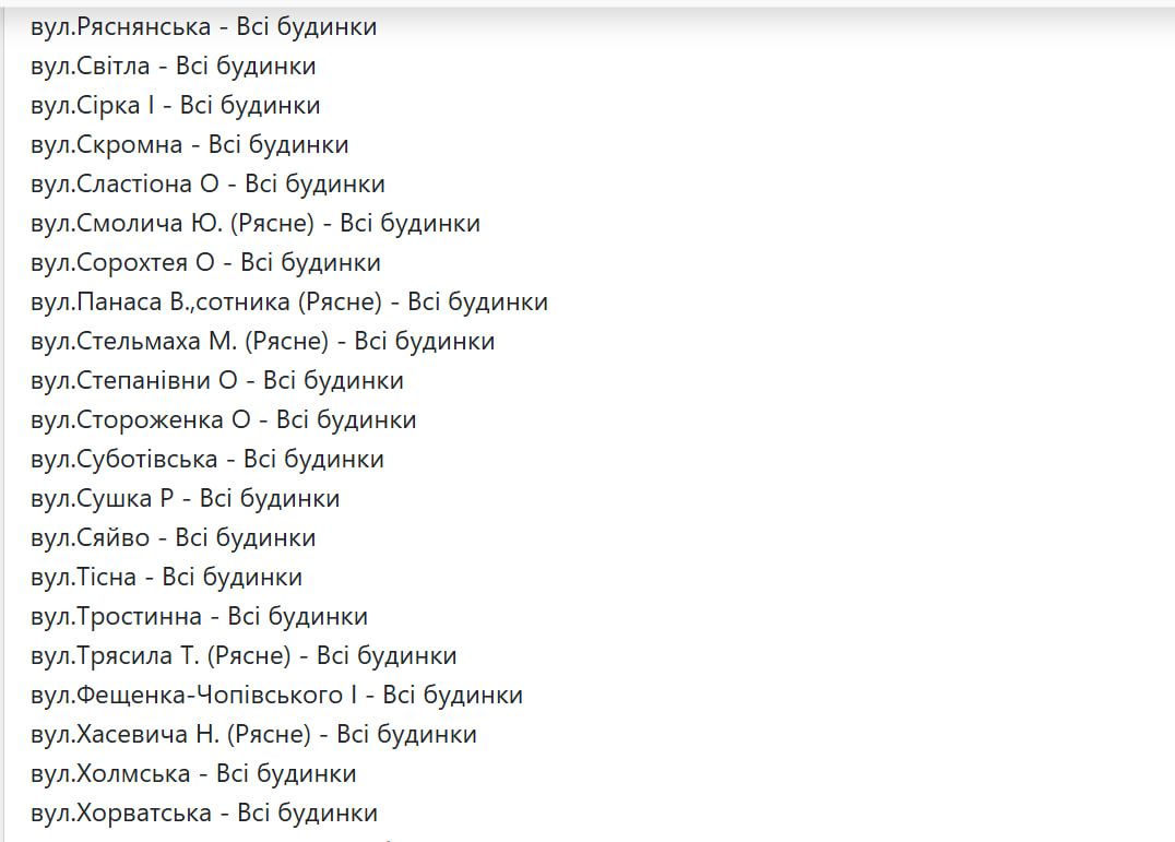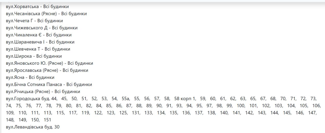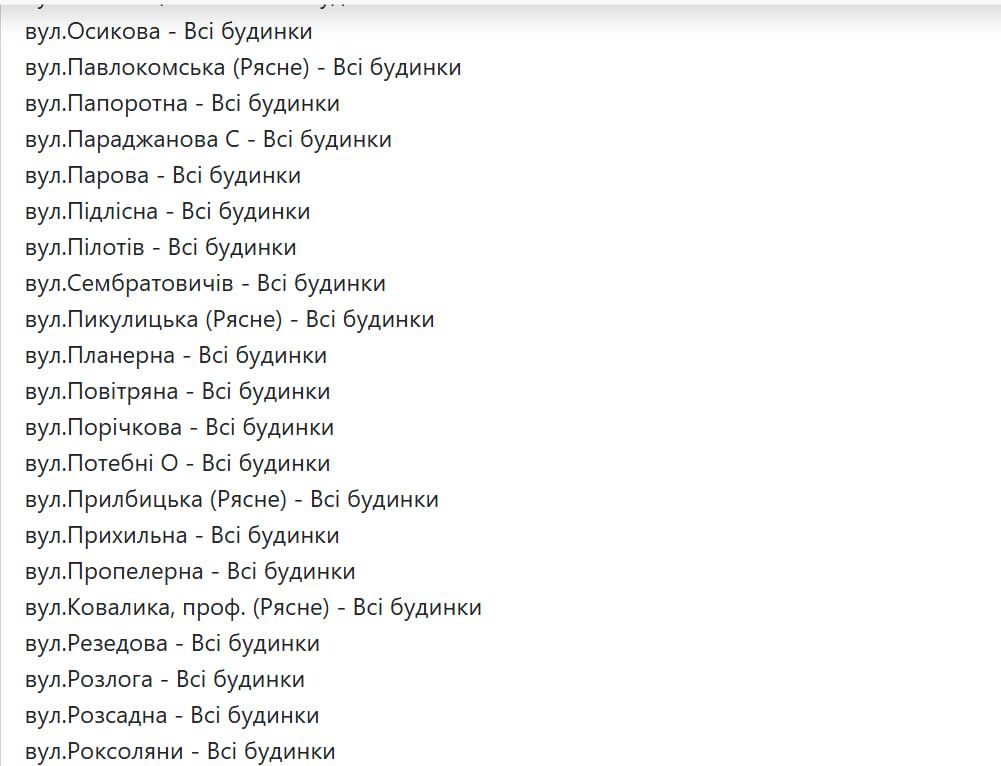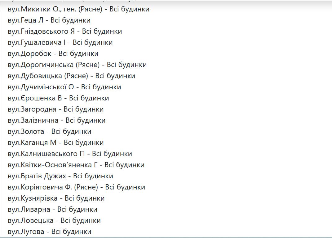 Повний перелік вулиць, де будинки залишились без води / Скриншоти 24 Каналу