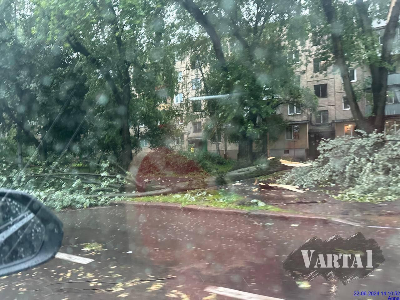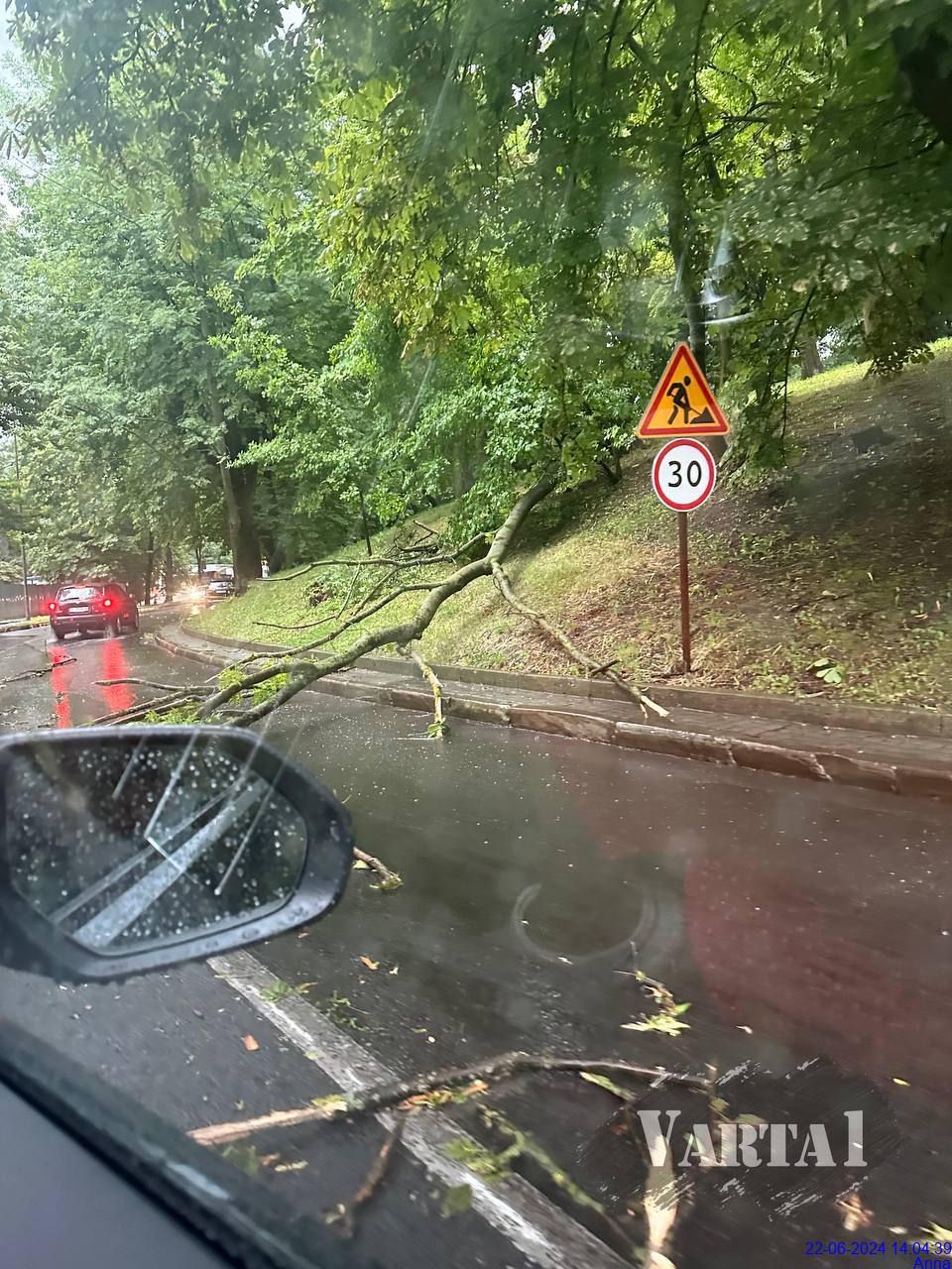 На вулиці Скорика впало дерево та пошкодило лінію електропередач. Водночас на вулиці Тютюнників дерева впали на автівки, подекуди є замикання ліній електропередач через сильний вітер.