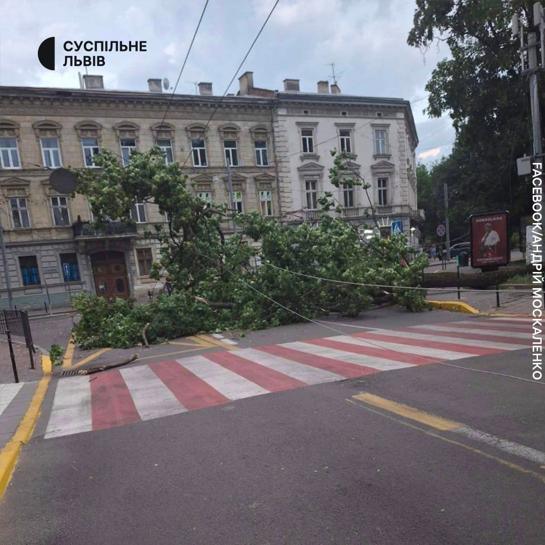 Станом на 21:20 зафіксовано щонайменше п'ять випадків падіння дерев. Про це повідомив заступник міського голови Львова Андрій Москаленко.