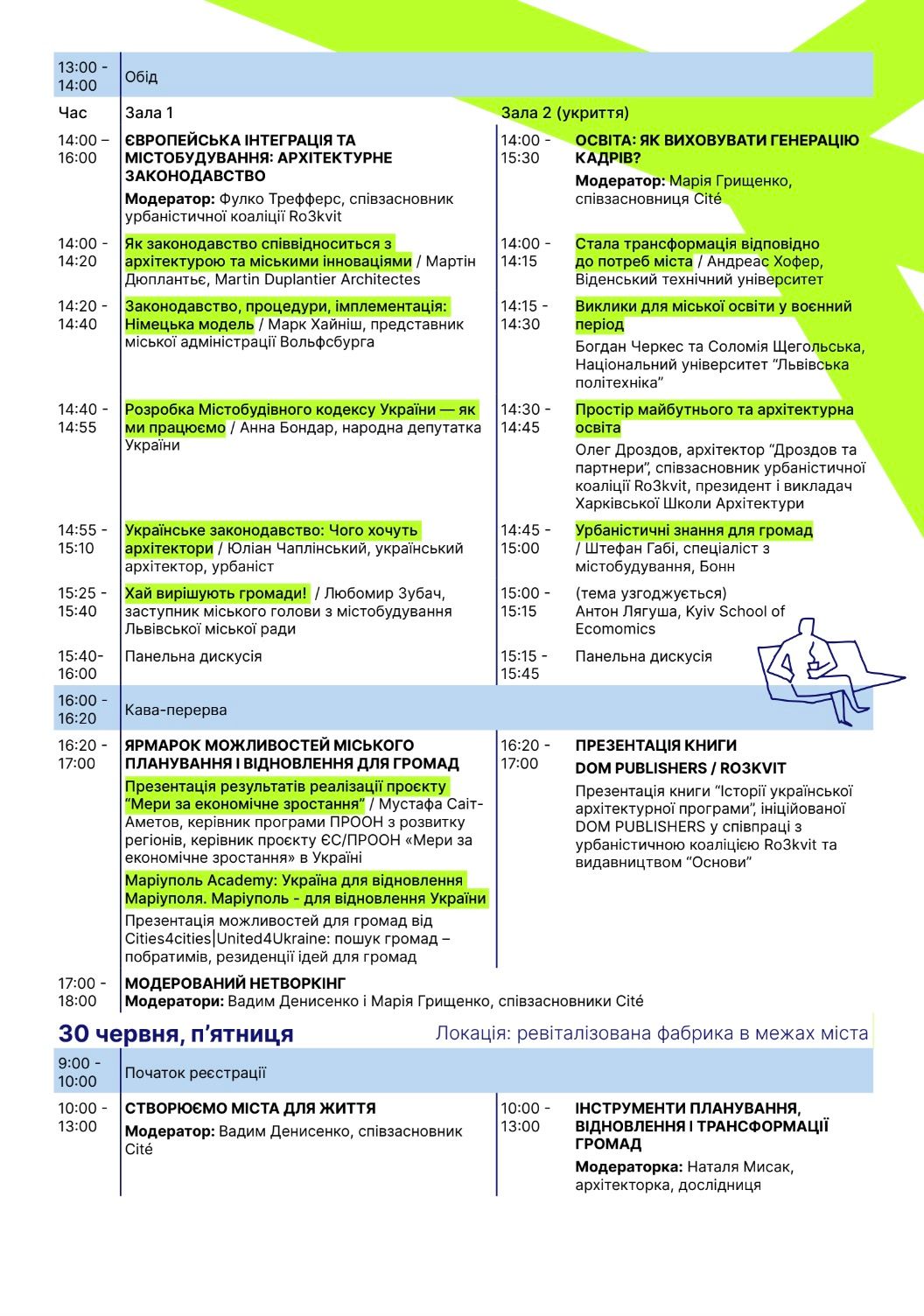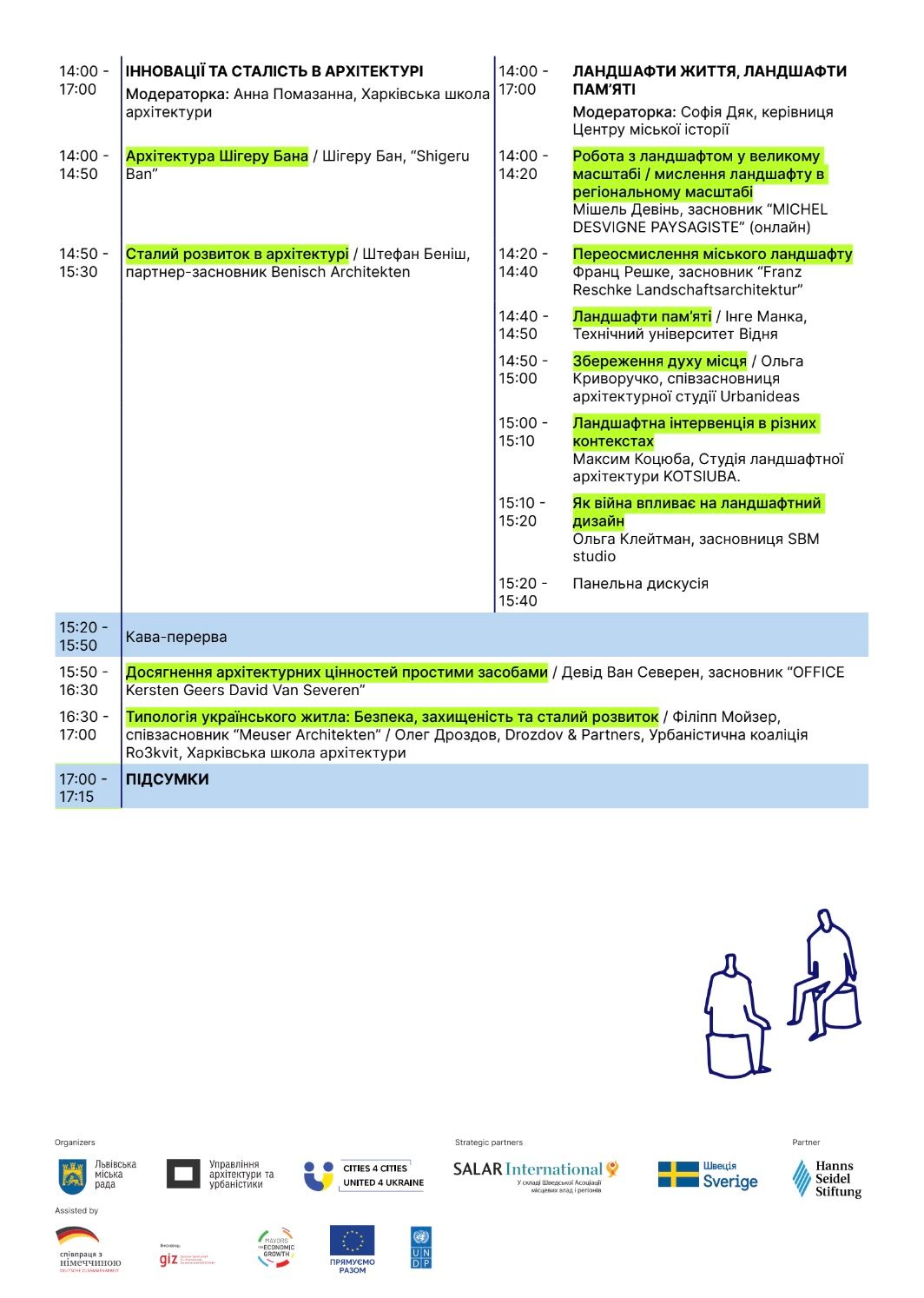 Власне, серед спікерів заходу: видатні архітектори, мери, головні архітектори європейських міст та навіть володарі Прітцкерівської премії – це найвідоміша світова нагорода у світі в архітектурній галузі.