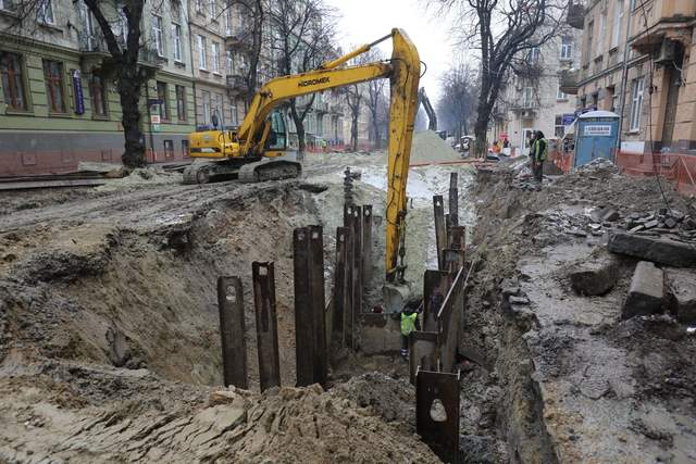 Тривають ремонтні роботи. Бруківка на місці. Зараз там працює 50 робітників та 20 одиниць техніки. Вже завершують прокладання колектора до вулиці Коновальця, та водогону до вулиці Антоновича,
