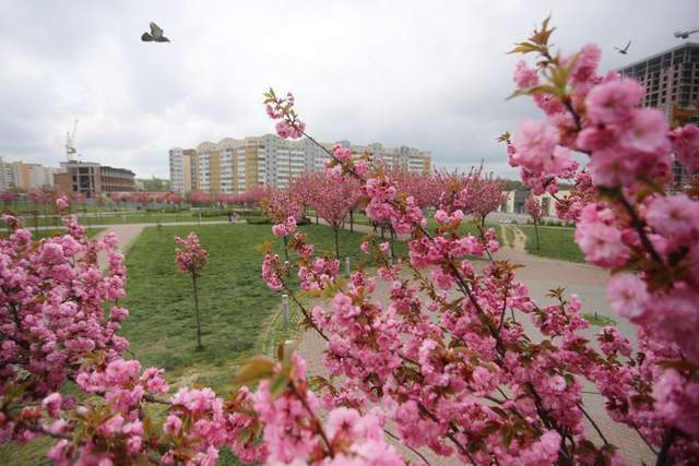 Дивіться фото сакур у парку імені Івана Павла II / Фото Романа Балука