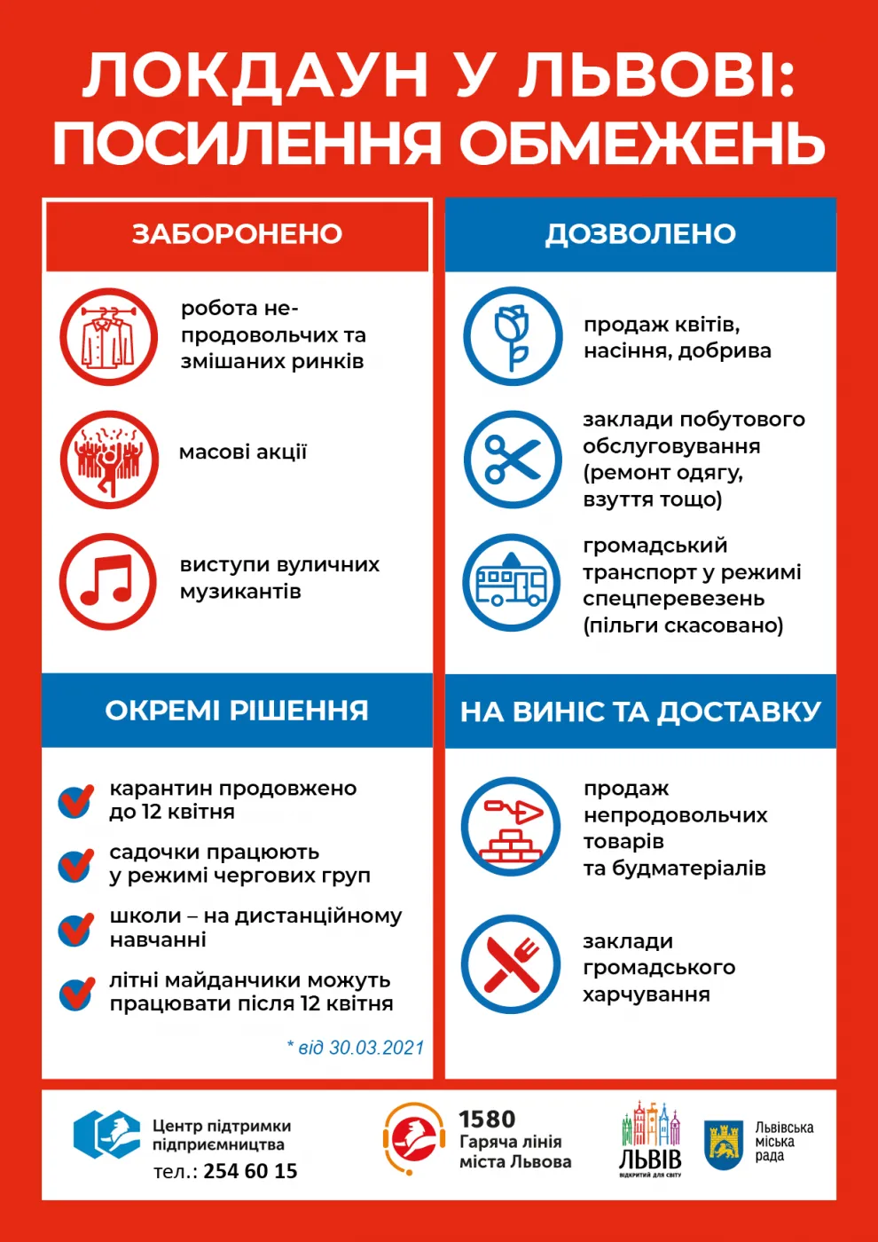 - З 25 березня Львівщина перейшла у червону карантинну зону. Тож в області почали діяти обмеження, передбачені для найвищого рівня епідемнебезпеки.