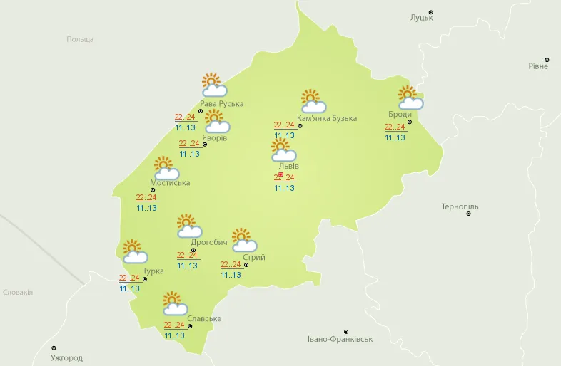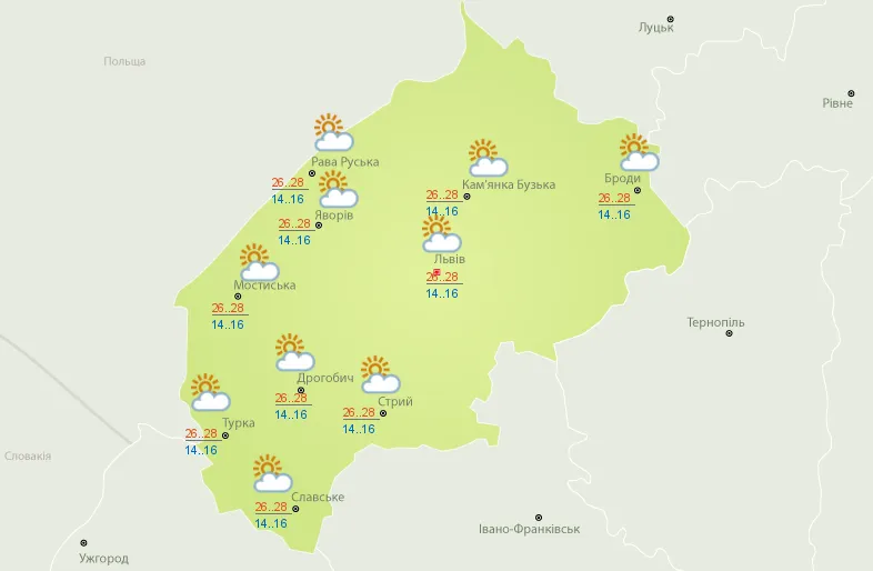 Прогноз погоди на Львівщині на 5 – 8 серпня