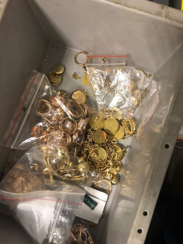 - майже 1,7 кілограма ювелірних виробів з металу жовтого кольору, схожого на золото.
