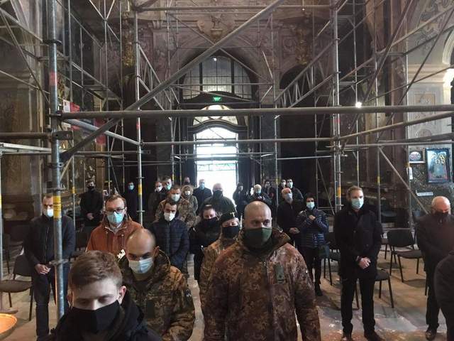 Попрощатися з бійцем до храму прийшло не багато людей. Адже у Львові діє локудаун та заборона на масові заходи.