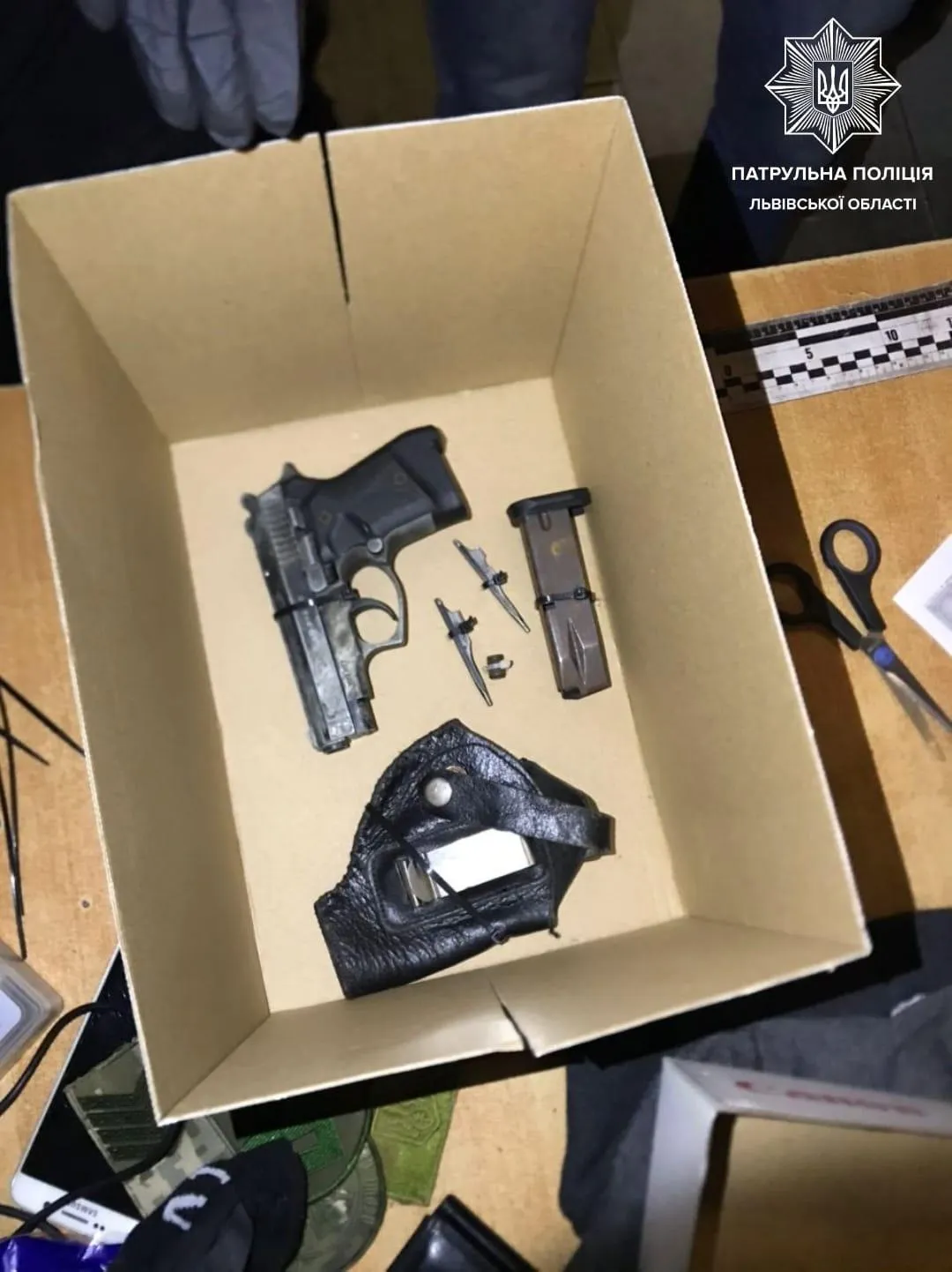 Під час обшуку поліцейські знайшли у чоловіка пістолет / Фото Патрульної поліції Львівщини