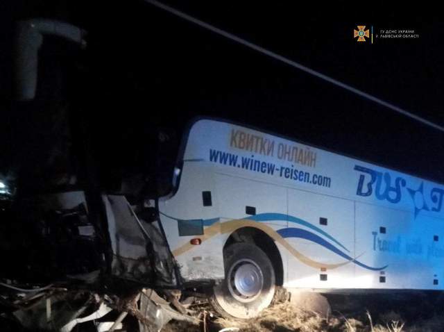 Він виїхав на зустрічну смугу й там зіштовхнувся з пасажирським автобусом Van Hool, яким керував 47-річний львів'янин. За інформацією Департаменту з питань цивільного захисту ЛОДА, він виконував міжнародний рейс сполученням Мелітополь – Щецин.