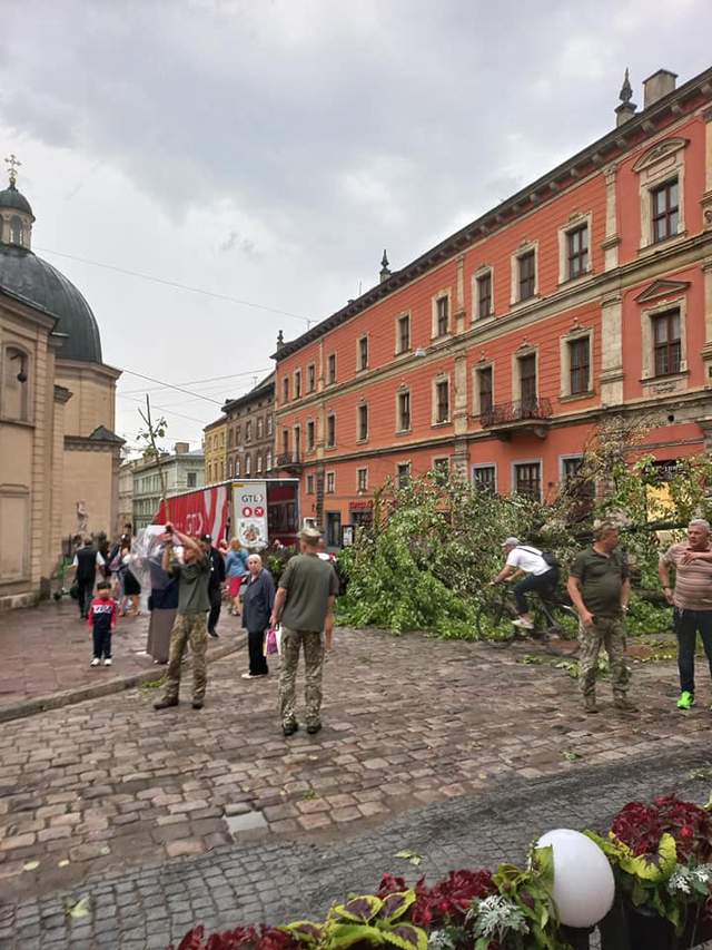 Окрім цього було дерево, яке впало на авто. У цей момент у транспорті перебували люди. Ймовірно, мовиться про дерево, яке впало на автомобіль на вулиці Єфремова.