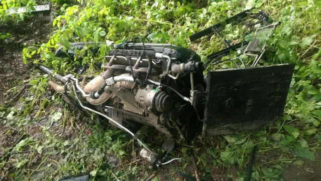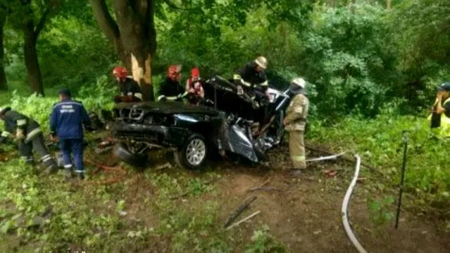Столкновение было настолько мощным, что машину буквально смяло как консервную банку, а двигатель от автомобиля выбросило на несколько метров.