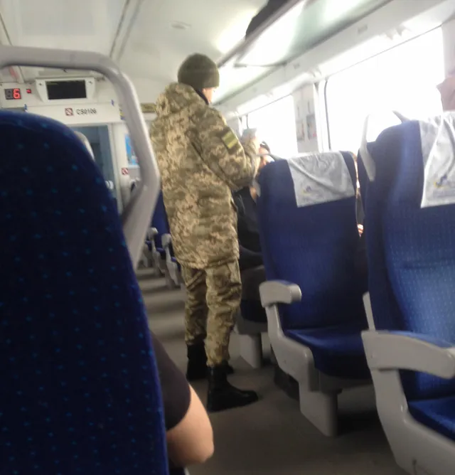 Местные видимо еще не привыкли к такому чуду техники и "Укрзализныце" или точно не ждали его со стороны Украины, так некоторые из здешних еще с восторгом рассматривают и фотографируют, когда "Интерсити" с трезубцем проезжает мимо.