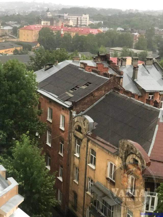 Львов после обеда снова накрыл страшный ливень. Город накрыл шквальный ветер, ливень и град.