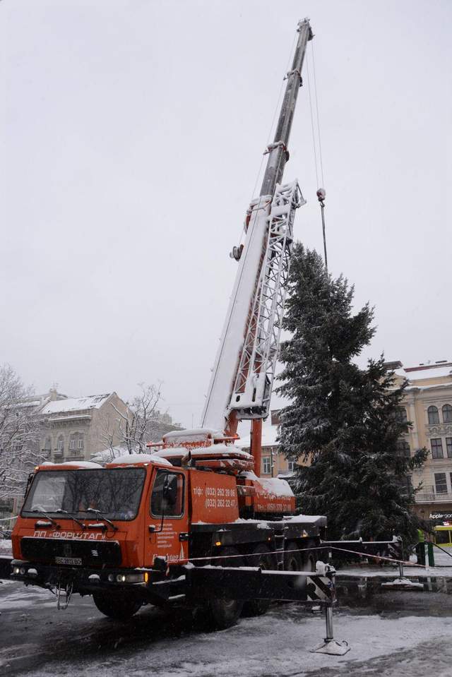 По информации "Твой город", елку во Львов везли в сопровождении полиции с несколькими экипажами. Дерево было довольно сложно спилить, ведь оно росло рядом с многоквартирным жилым домом. Чтобы не повредить здание, работы производились очень медленно и осторожно. Рождественскую красавицу срезали примерно в 10 часов.