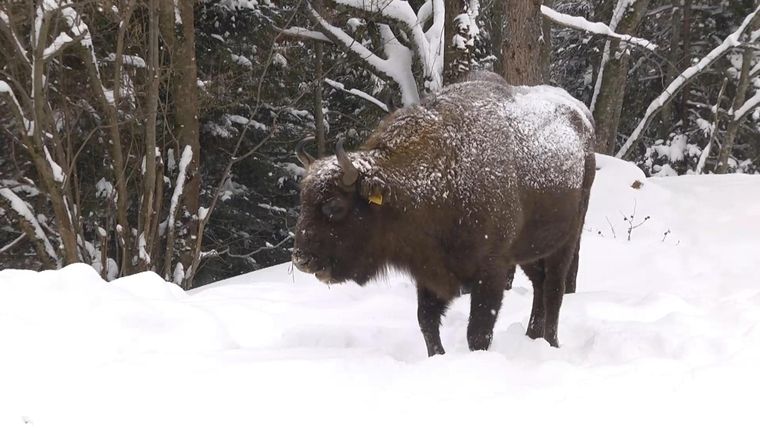 Летом они живут как обычные дикие звери: ходят по лесу, ощипывают травку, то есть летом они питаются сами. Поэтому встретить зубра в тот период практически нереально, они прячутся высоко в горах.