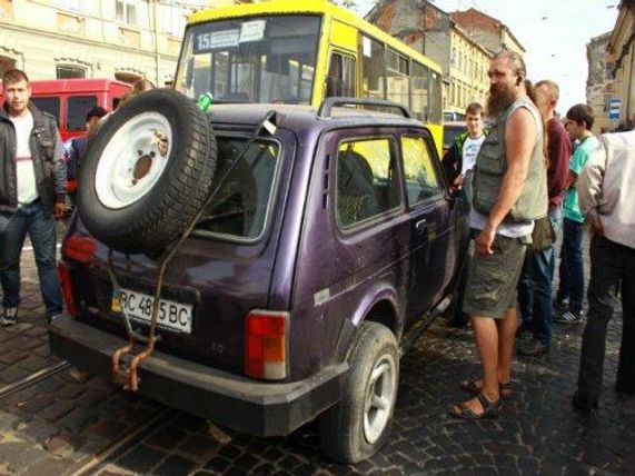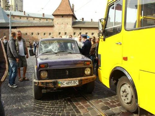 Протестующие не захотели пропускать машину на Лычаковскую. После этого водитель врезался в колонну и сбил троих человек, в частности — бойца АТО, многие попадали на землю.