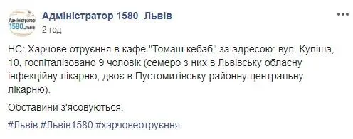 "Сімох осіб госпіталізовано у Львівську обласну інфекційну лікарню, а ще двох – в Пустомитівську центральну районну лікарню", – йдеться у повідомленні.